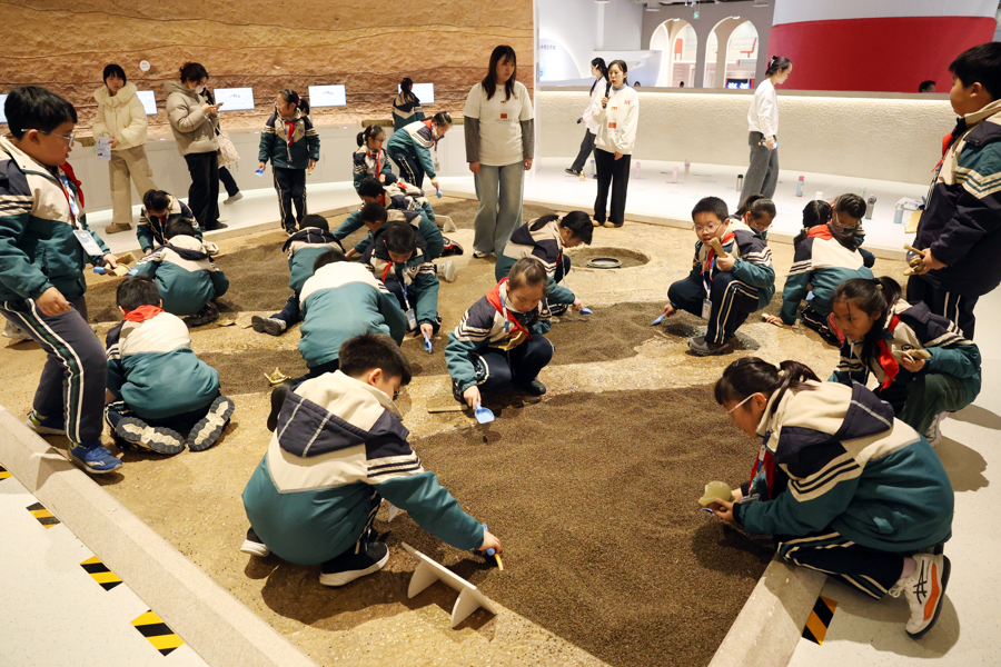 学生们体验“小小考古学家”进行文物模拟发掘。