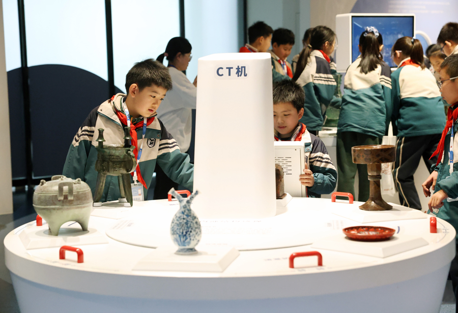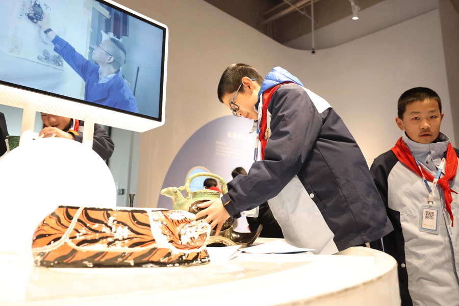 孩子们体验模拟文物检测与修复。
