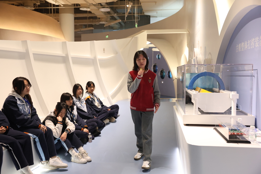 学生们了解长江口沉船文物打捞相关知识。